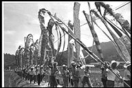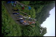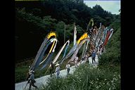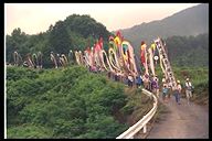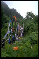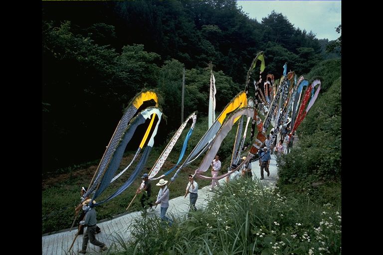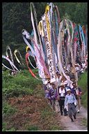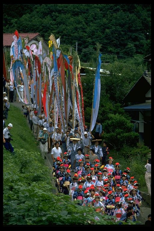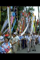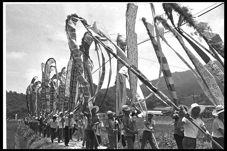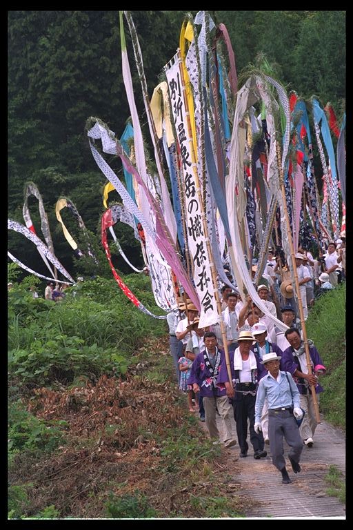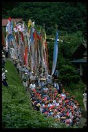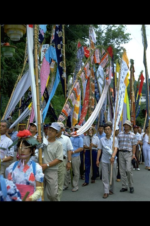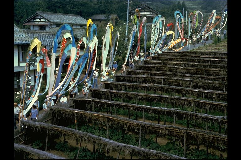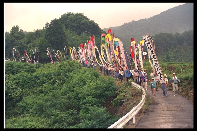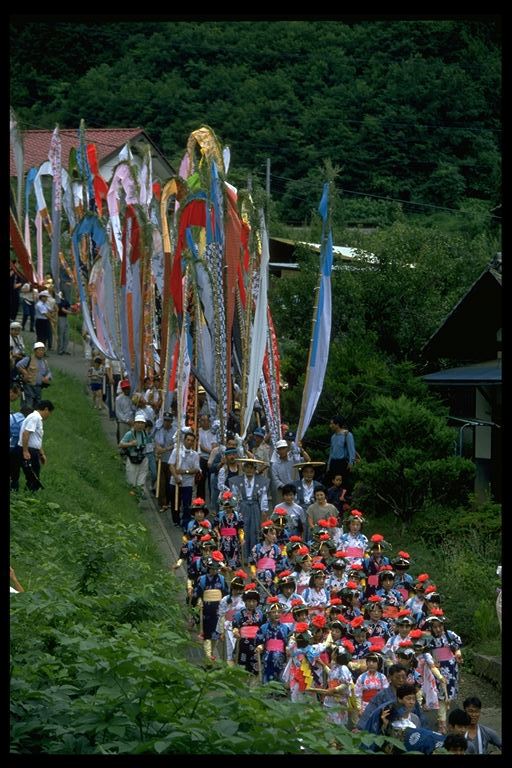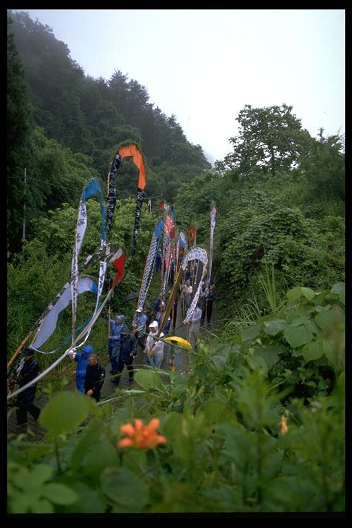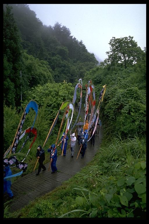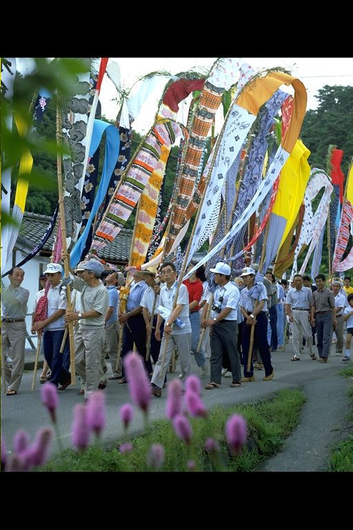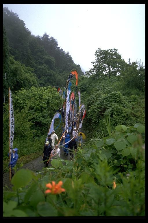 別所地区に伝わる珍しい雨乞いおまつり。日照りに苦しんだ農民が夫神山頂の九頭竜権現に祈って雨を授り、そのお礼に雨の降るさまをかたどった大幟を供えるようになった。7月15日頃。