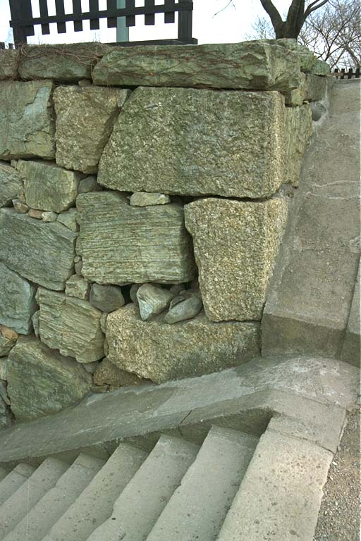 本丸東虎口櫓門部分は、下層の柱の配置が黒点で示され、「六間」、「三間」と上層部の規模が記されている。また、袖塀部分は朱線で示し、石落しも「塵落し」として正確に記入されている。
