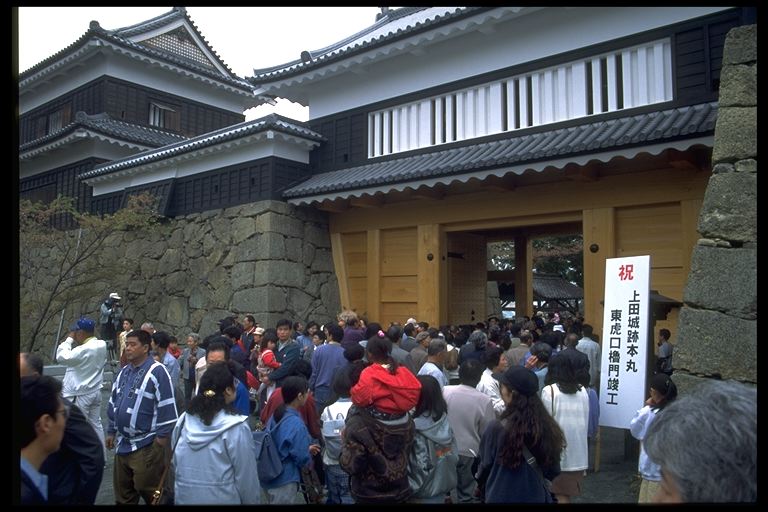 平成6年4月24日に行われた、上田城跡本丸東虎口櫓門復元工事竣工式の模様。