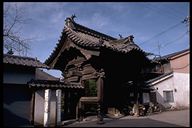 この門は、切妻屋根平入りの四脚門で、正面の唐破風、妻飾をはじめ全体として桃山建築の様式と風格をそのまま伝えているどっしりとした建築です。