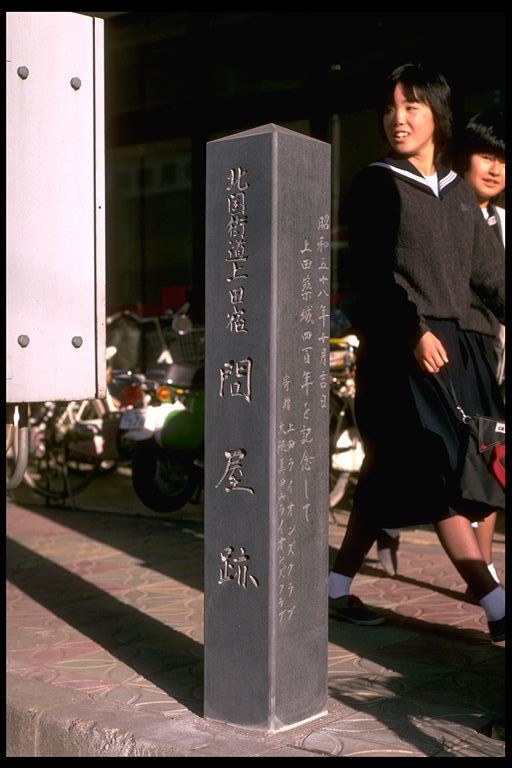 上田城築城400年を記念して上田ライオンズクラブと、姉妹提携している大阪真田山ライオンズクラブとが寄贈したもの。ここは藩の触れをはり出す「高札場」でもあった。