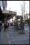 小売店を中心に、さまざまな店舗が混在しており、それぞれが個性を主張しています。また、敷地が比較的狭いため、オープンスペースを確保するのが困難で、緑化スペースが少ないのが実情。ポケットパーク、アーケードの一部を取り壊し、街路樹の植樹、低い照明塔などが施されています。