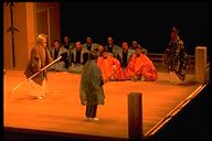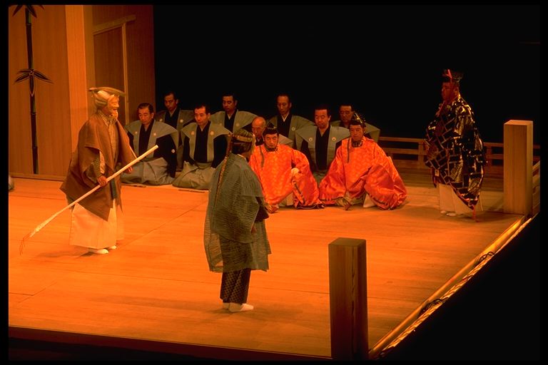 市民会館にて、能「高砂」「羽衣」、狂言「棒縛」などを上演。大勢の観客は、日本の古典芸能が繰り広げる幽玄の世界に引き込まれていました。
