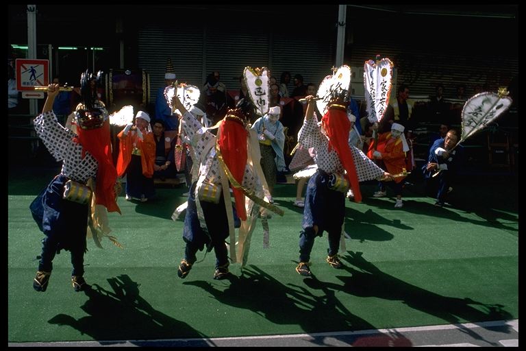10月15日、海野町日曜広場において、丸子尾野山三頭獅子、前山三頭獅子、下之条大神楽など9番が演舞しました。