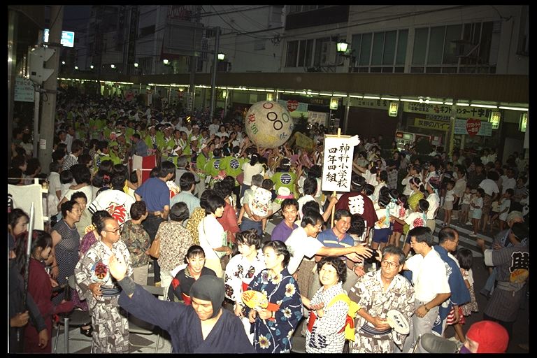 第1回は昭和47年。「上田わっしょい」の曲にのって市民が踊る。思い思いの趣向をこらした踊り連があんどんを先頭に練り歩く。