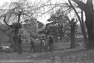四月十日前後になると、本堂裏手の竹やぶの中で、紅紫色のカタクリの花が咲き誇ります。数百株はあるでしょう。一年のうち十か月を地下で生活し、花を咲かせるのは十日ほど。山門下の参道のシダレザクラと併せて、訪れる人の目を楽しませています。 (大円寺副住職・林 紹道さん)
