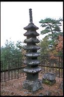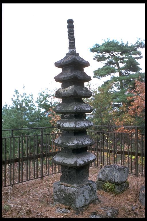奈良尾の富士嶽神社の西の山頂にある七重の石造多層塔姿。昭和28年に第6層・7層、相輪が補修され現在に至っています。