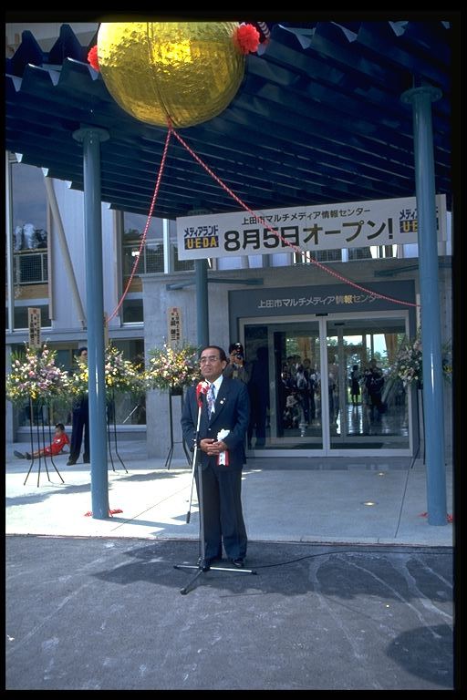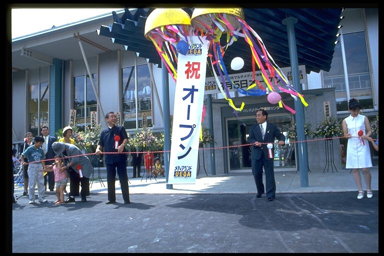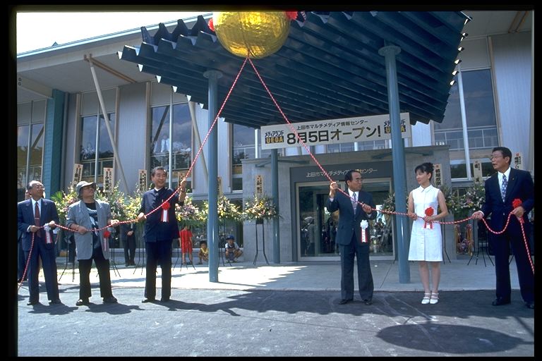 8月5日、上田リサーチパーク内に『上田市マルチメディア情報センター』(愛称=メディアランドUEDA)が待望のオープン、連日、おおぜいの人たちでにぎわいました。マルチメディア社会の到来といわれる21世紀を目前に、新たな情報ネットワークの整備を進めるとともに、文化、歴史、産業などの情報発信の拠点としての機能を目指します。