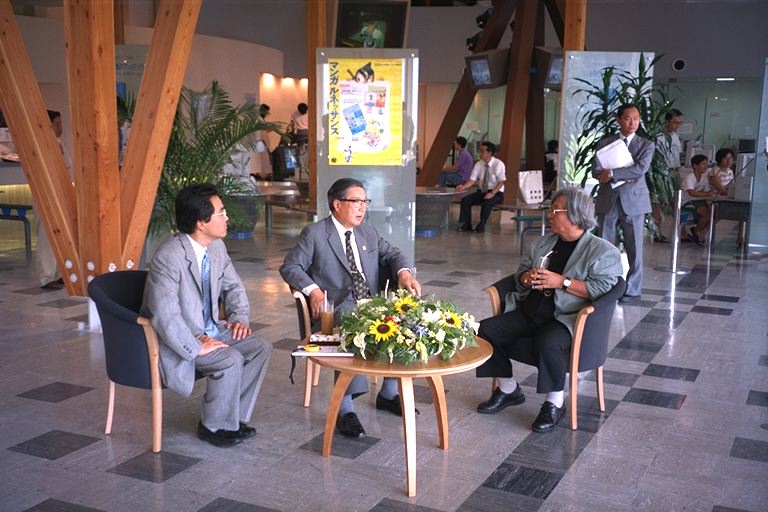 名誉館長・石ノ森章太郎さんと、コンピューターグラフィック製作プロデューサー・河原敏文さん、ホール映像プロデューサー・泉博史さんによるトーク・セッション。