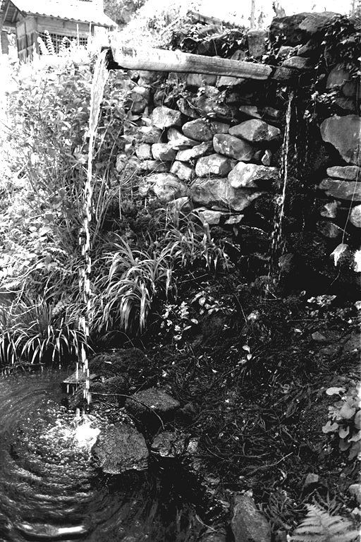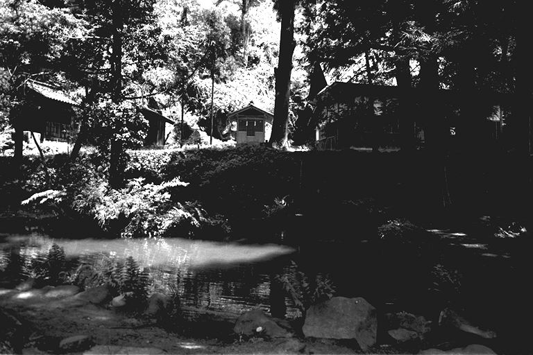 滝の宮神社は、古くから赤坂・矢沢地域の守り神で、わき水が出ることで、この辺りでは有名です。烏帽子山系の地下水が境内の石垣の間から、その真下にある池に、まさに「滝」のように流れ落ちます。このわき水は相当な量で、昔、水道が敷かれるまでは、殿城地方一帯でここの水が使われていました。