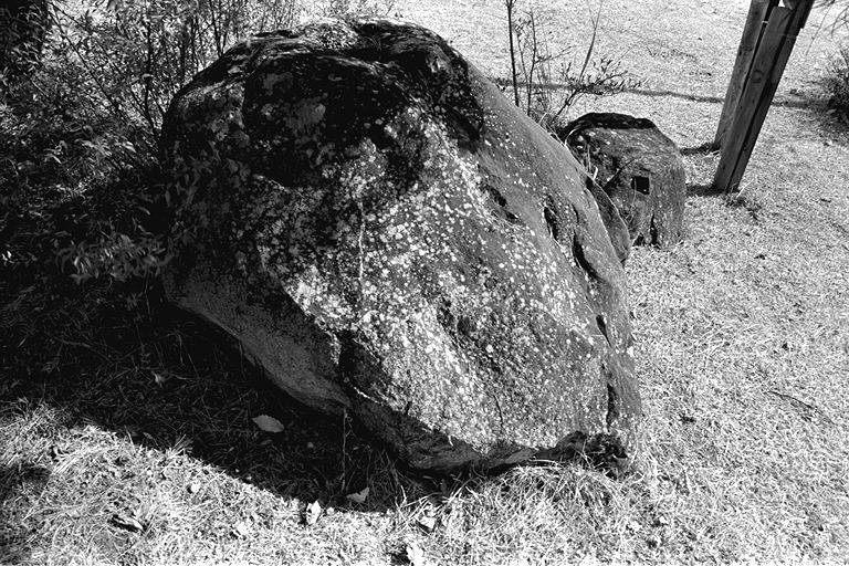 市民の森ができる前、この周辺は旧豊里村の村有林で、そこには「雨池」と呼ばれる小さい水たまりのような湿地帯がありました。鎌研ぎ石は、当時その辺りにあったと聞いています。わしば山荘建設のときに、現在の場所に移されたようです。 お話(中村 光一さん・長入)