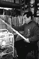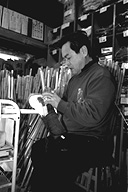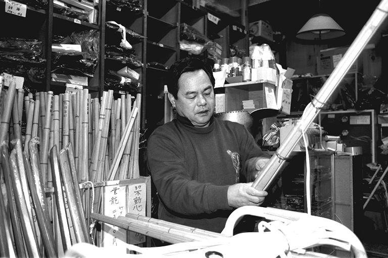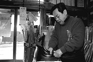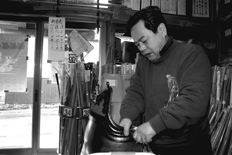 古い家並みが現在も残る柳町、保命水にほど近い場所に佐渡さんの店があります。昭和三年に先代が創業。東信地方では唯一、製作および修理をしています。「終戦後、武道が一時禁止され、その間はかばんや野球のグローブの修理なんかをしていましたね」と佐渡さんは当時の様子を語ります。