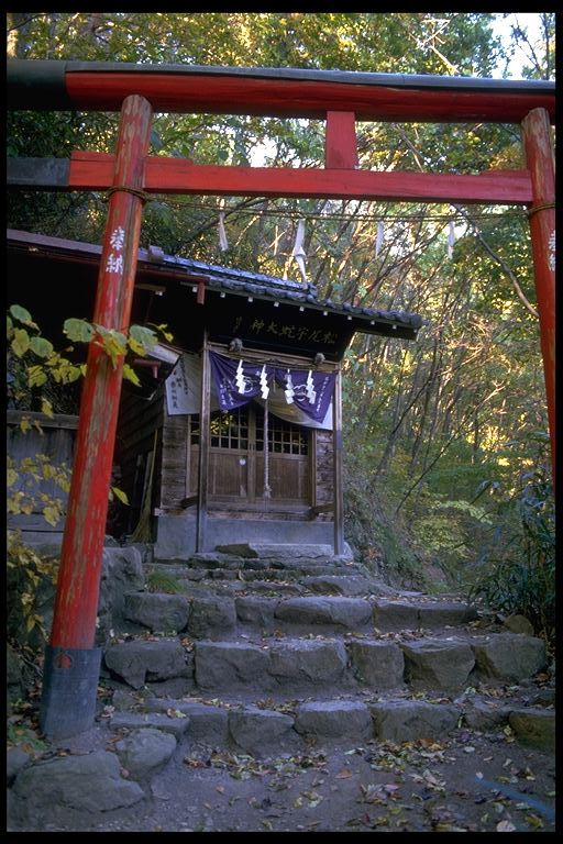 四十八曲りから沢を隔てて白蛇神社がある。上田城の堀に住んでいた白蛇を祭ったという。