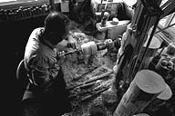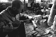 木曽地方には多いという木地師も市内では滝沢さんだけ。「何しろ、ろくろ屋(木地師)は年季がくうし、何でも屋みたいなもの」とあっさり。確かに材料の仕入れから管理、そして鍛冶、のこ刃の調整(目立て)といった一連の技術が要求されます。