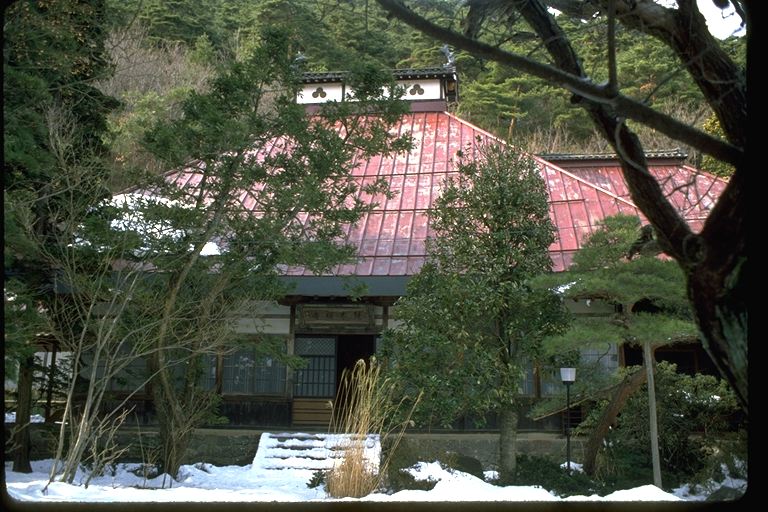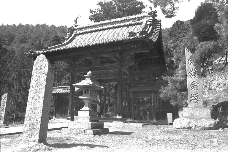 壮厳かつ華麗といった相反するような二つの美を兼ね備えた総門には、「砥石法窟」(砥石山麓に開かれた仏法の修業道場)という扁額が掲げられています。総門をくぐると、城のように高く築き上げられた石垣や老松・老杉が訪れた人たちをなごませてくれます。