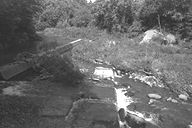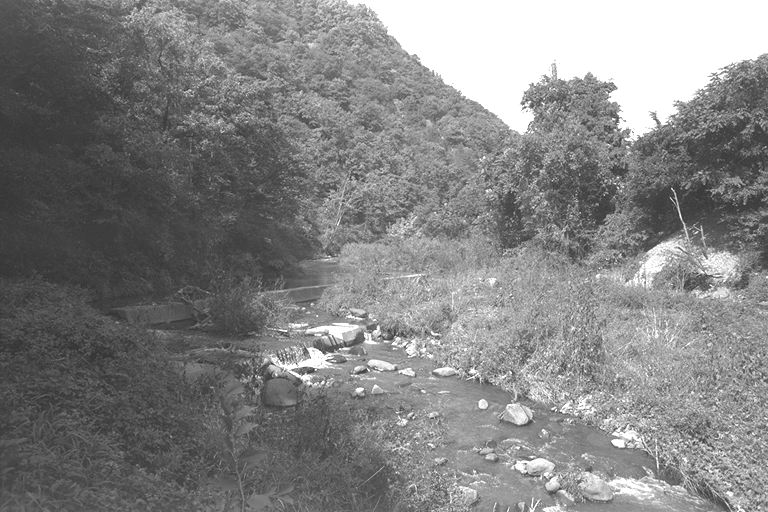 この神川へ出る道は崖を下りて行くような急な坂ですが、このあたりが上州街道の面影をとどめている場所と思われます。旧川久保橋は長さ約15メートル、幅1.2メートル、上田城下への関門とも言える重要な橋でした。