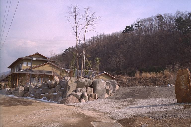 選定理由 建築物は郊外の公民館で、伝統的な素材を活用した純和風の数寄屋風の造りであり、形態は地域の手本となるもので、周囲の景観への配慮がされています。近くで行われている上信越自動車道の建設工事により、掘り出された自然石を使用した外構など地域にふさわしい素材を活用しています。また、地域に自生する樹種による植栽がされるなど、周囲への配慮がされています。