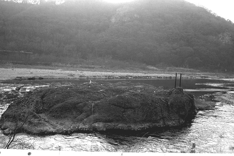 この岩は、数年に一度は大水で、岩ごと水がかぶってしまいます。そのときは、千曲川も広いなぁと、つくづく感じますね。 お話(長谷川 好男さん・岩下)