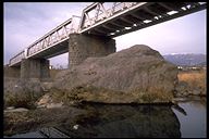 大石橋の下にある岩が猫岩。