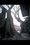 昔、あの木に雷が落ちて、村の者がよってたかってつかまえた。そこで雷様があやまって、岩下へは今後絶対落ちないって約束して、天に帰してもらったという話がある。それ以来、岩下へは雷は落ちないだそうです。まあ、落ちたこともあるでしょうが…。
