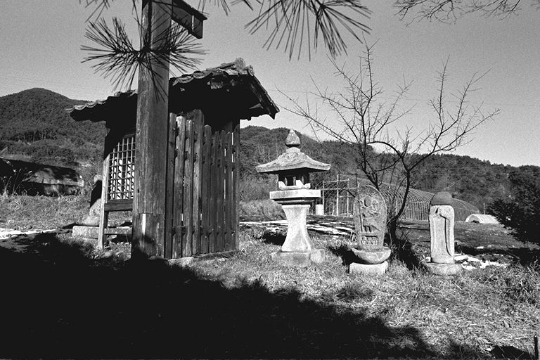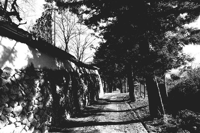 大日堂へ通ずる表参道は、今ではとても狭くて車一台がやっとこ。車でくるかたは、ほとんど裏の広い道へ回ってしまうほど、意外に知られていません。でも、地元の人にとっては、春のお祭りや御開帳、葬儀のときの「野辺の送り」には、必ず利用します。