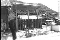 高札場は、室町時代から明治の初めまで、人目に付きやすい往来や村の中心地に高札(掲示板)を掲げた場所。ここ浦野宿では、問屋だった渡辺さんのお宅の前に置かれていました。土台は切石積みで幅約3メートル、奥行き約1.5メートル。昭和46年には川西村で復元改修をし、板ぶきの高札場が完成しました。