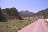 室賀川(古称・氷沢川)に大手橋がかかっています。目立たない小さな橋ですが、城の表門を指す「大手」が橋の名になっているので、どこかにお城があるのかと思わずあたりを見回す人もいることでしょう。