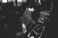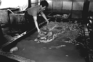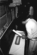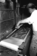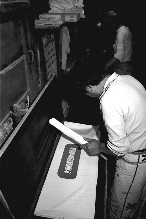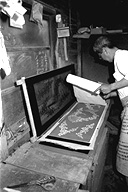 現在、手ぬぐい専門は、市内で2軒だけ。最近はデザインがインテリア用にと多様化してきたそうです。 (撮影日:平成04年06月02日)