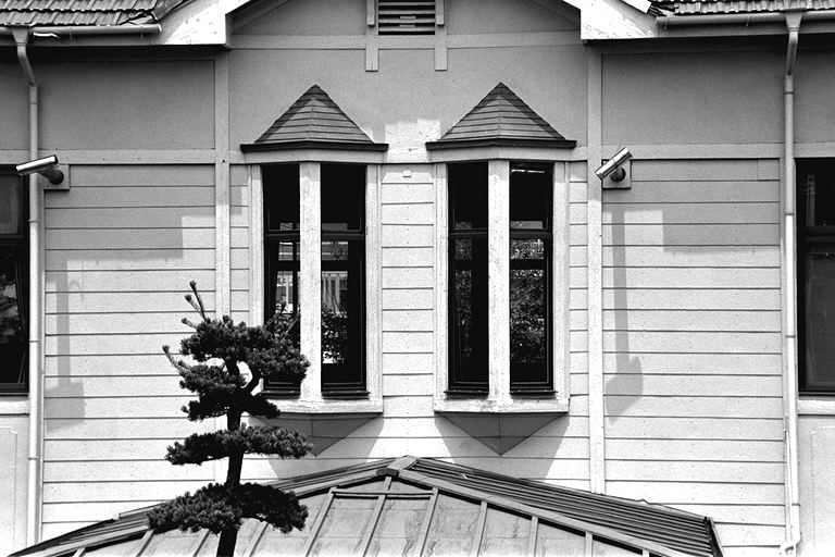上田城跡公園入り口から、二の丸通りを北にしばらく行くと、大きなヒマラヤ杉が。その奥にひっそりと建っている洋風の建物が、小県上田教育会館(通称上小教育会館)です。