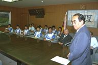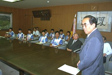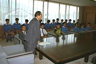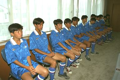 塩田中学校の女子テニス部と上田第1中学校のサッカー部が全国大会出場にあたり、上田市に表敬訪問しました。 (撮影日:平成07年08月17日)