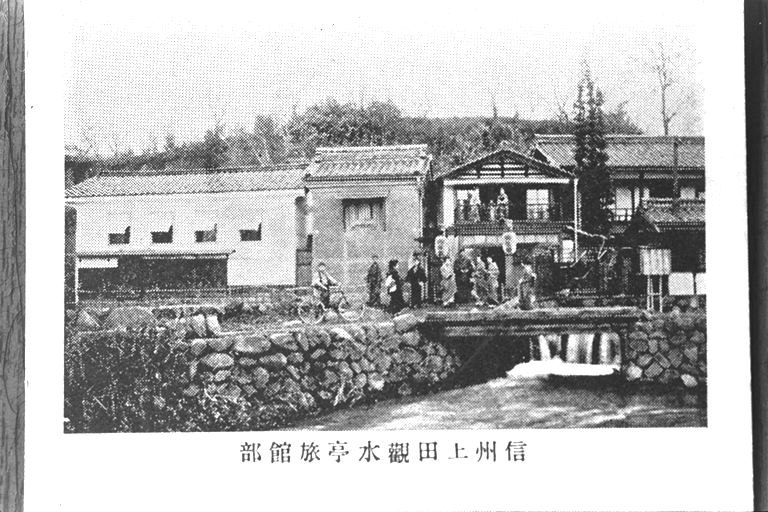 「観水亭」は、佐久間象山の命名だそうです。明治十二年に料亭として建てられ、その後、平屋の上に二階を増築。時の総理大臣や大相撲の横綱などが泊まったこともありました。戦時中は、東京からの学童疎開で、大広間に七十人余りを寝泊まりさせたことも…。昭和四十六年に「上田グリーンホテル」として新装するまでは、当時のままの姿でした。