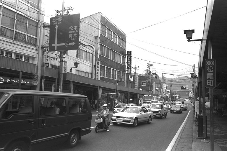 下川原に駅の設置が決定したのは、明治18年でしたが、そのころから上田駅へ通じる松尾町通りの工事が進められ、10数メートルの高さの段丘が切り崩されました。この工事は城と町を防衛してきた地形(要害)を大きく変え、上田の町の近代化を告げるものでした。