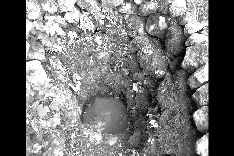 「月餅」という名の由来は、この泉の形が中国菓子の月餅に似ているからだとか。仲秋の名月の夜、この泉に映った満月はたとえようもない美しさであったとも言い伝えられています。石垣の苔生した様からみても、かなり古くから湧いていた泉だと思われ、周辺から聞き伝えて汲みにくる人も多かったに違いありません。(龍光院所有)