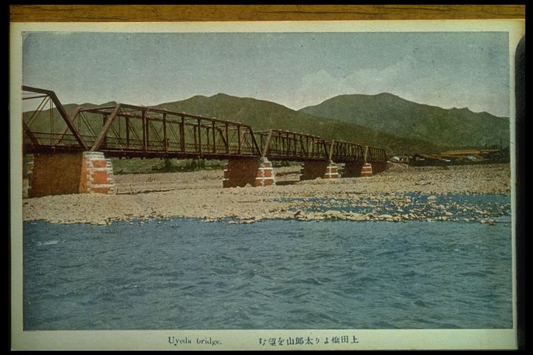 明治期の千曲川の流れと、太郎山。上田橋は明治23年に開通している。シゲタが少年の頃よく遊んだ。この光景がいつまでも忘れられなかった。(写真提供=若林勅滋さん)