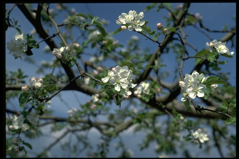 春は山菜が食ぜんをにぎわし、秋は松茸、雑きのこ、信州そば、信州みそ、信州銘酒、凍み豆腐、塩田鯉、りんご、ぶどう、くるみ、くり。写真はりんごの花。