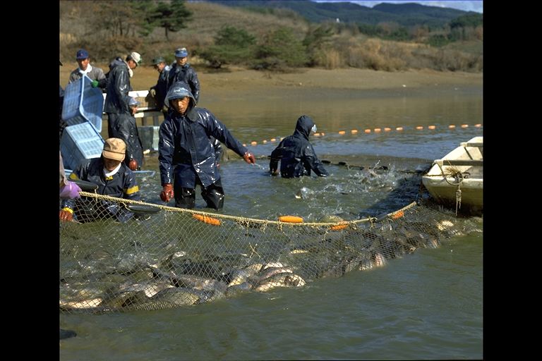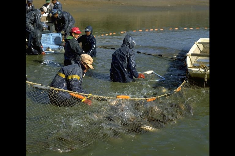 春は山菜が食ぜんをにぎわし、秋は松茸、雑きのこ、信州そば、信州みそ、信州銘酒、凍み豆腐、塩田鯉、りんご、ぶどう、くるみ。写真は塩田鯉の揚魚風景。