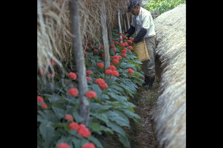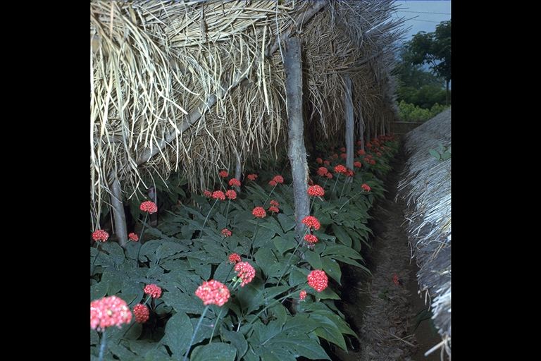 塩田平の山沿いに、よしの屋根をつけた小屋が並ぶのは人参畑。漢方薬の「薬用人参」は特産6〜7年かけて大切に育てられる。1〜2年の小さなものは天ぷらにして塩田平の名物料理。