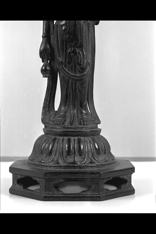 なお左手の肘から先、「宝瓶」の頭部から下、「天衣」の右脇垂下部、台座などは欠けていたのを、新しく補ったものである。