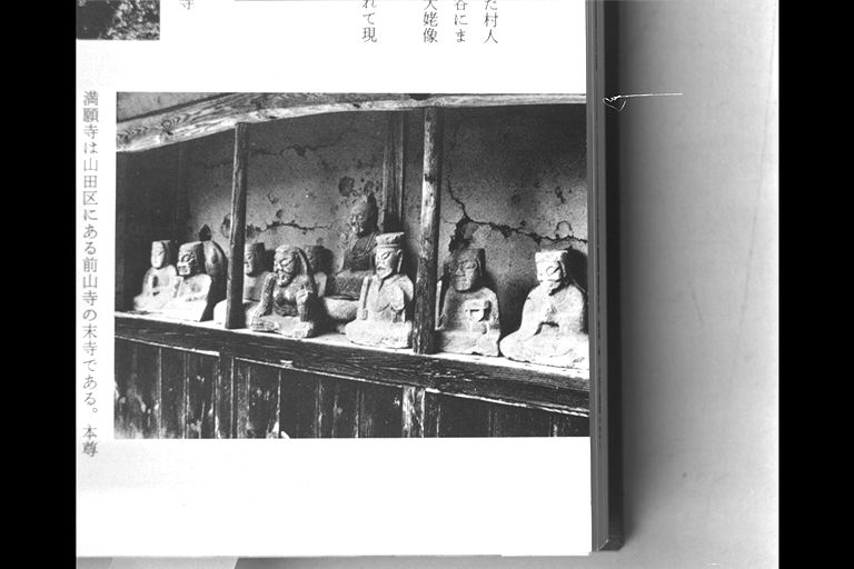 満願寺は山田区にある前山寺の末寺である。本尊の薬師如来をはじめみるべき石仏など多い。お寺の右手にあるお堂の中に、石の十王像が並んでいる。