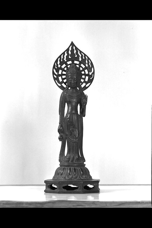鋳造の技法は、古例はほとんどその凡てが蝋型を用いるもので、先づ粘土を用いて大略の形を作り、この表面に蝋の薄い層を盛って、その表面に像容を彫刻し、これを注意深く粘土で包む。内部の粘土形が中型、外から蝋を包むものが外型である。この中型と外型とを適当な箇所に型持ちの支柱を打って固定し、多くの像底に設けた湯口から溶銅を注ぐと、この溶銅が間にある蝋の層を溶解しながら、蝋の部分に隙間なく行きわたり、鋳造が完成する。この上で外型の粘土(こまかい砂混りの比較的さくいものを用いる)を取り去って、細部を鏨を用いてさらい、刻んで仕上を行うわけである。つまり、鋳造された像の厚みは、すなわち蝋の厚みであって、鋳造後は、内部の中型となった粘土は、出来るだけこれを取り去るのが例である。この中型には、大作はもちろん、小像においても、中型を支える支柱として鉄心を立て、鋳造後にこれを粘土もろ共に除去するのが通例であるが、これが像容によって困難な際には、半にて切るか、粘土を除去した像内の空洞内にぶらさがる形となっているものもある。(薬師寺脇侍例)