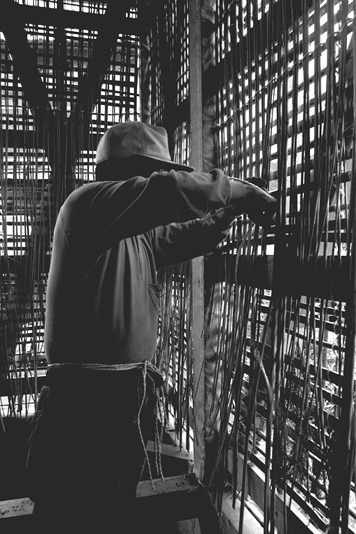 現在、木舞の作業をやっているのは、市内でも金井さんぐらい。その手際のよさは、作業全体がまるで一つのリズムになっているかのよう。スピーディーかつ正確です。