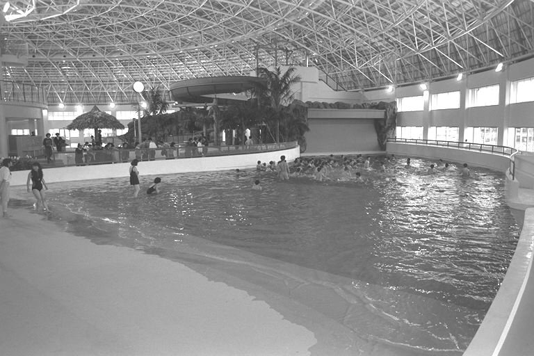 市制七十周年記念事業として上塩尻に建てられました。地上二階、地下一階の鉄筋コンクリート造りで、延べ面積7500平方メートル。一階は水深が3メートルまで調節できる25メートルプールや、複雑な波の変化が楽しめる造波プールのほか、ちびっこプールなど。二階にはスライダープール、渓流下りプールや健康づくり室、レストランなどもあります。このほかに、クアコーナーや日光浴場、サンデッキなども併設されています。