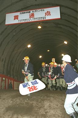 平成7年3月18日、北陸新幹線丸子トンネルの貫通式が行なわれました。