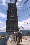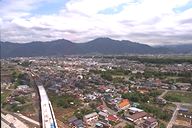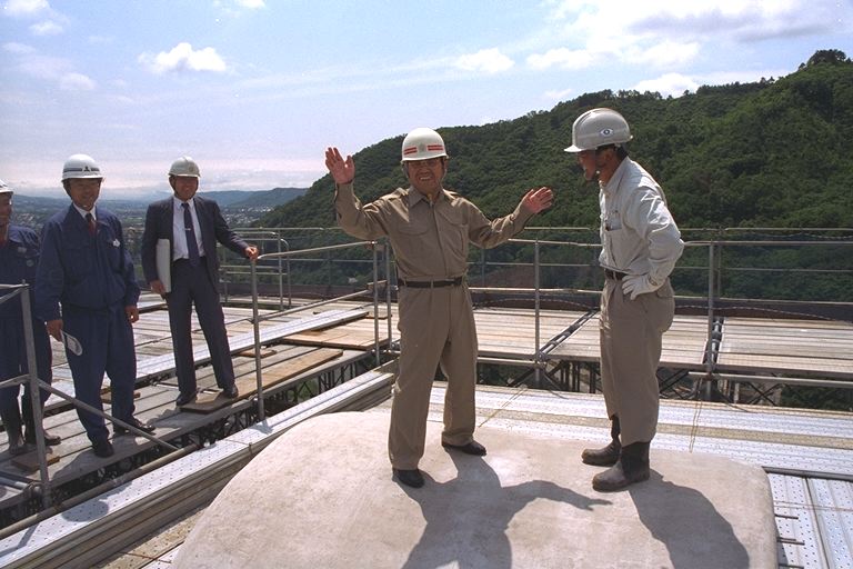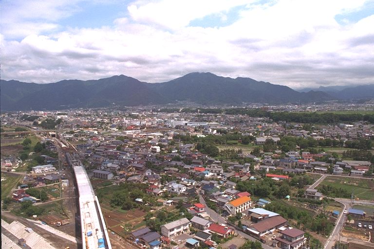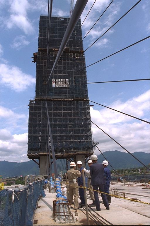 工事の足場が架かった主塔の最上部からは、市街地が一望でき、平成9年の開業に向けて着々と進む、新幹線建設工事の様子が手にとるようにわかります。