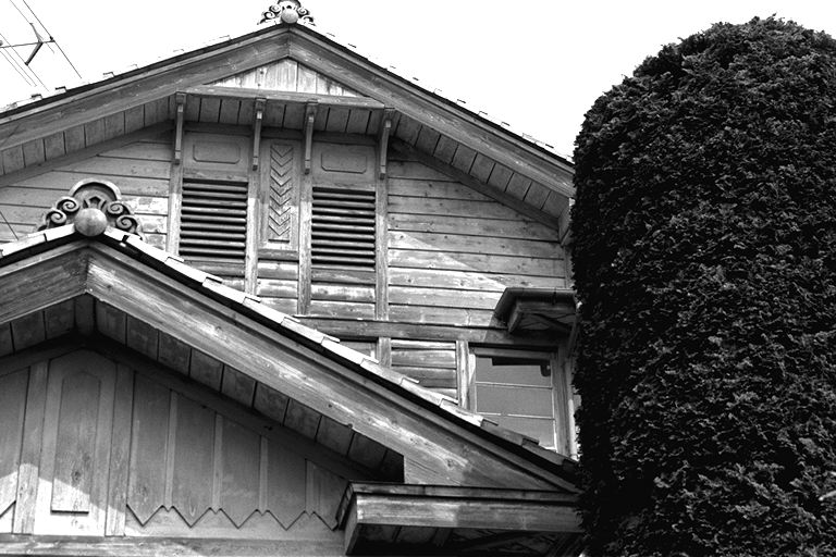 信州大学繊維学部の正門から緑あふれるキャンパスに入ると、右手の近代的な建物の陰に、下見板張りの洋風建築、繊維学部の同窓会である「千曲会」の旧会館が見えてきます。この建物は、昭和十年に完成しました。