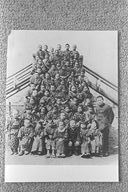 現在の一中の場所にあった、東小学校二年丙組一同です。校庭の片隅にあった木造の滑り台で撮りました。同級生は五十人余り。この中の何人かは、戦死しています。そのころは甲、乙、丙のクラス名で三組ありました。近年、卒業した年にちなんだ「昭七ひのえ会」(山崎益男会長)というクラス会を開いており、二十名近くで旧友を暖めています。