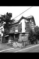 三角形に張り出した、小さな飾り屋根を持つこの洋館は『写真館』という言葉がよく似合います。