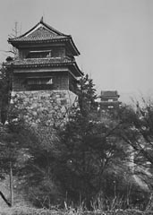 上田城跡本丸 右手崖下に尼ヶ淵の名ごりの水が見える(昭和43年3月撮影)