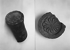 この八重の菊花文も桃山期の特徴的なものである。伏見城跡より出た瓦の中に、同じ菊花文様が見られる。この瓦も上田城跡から、2点発見されている。